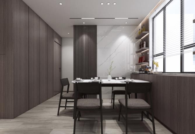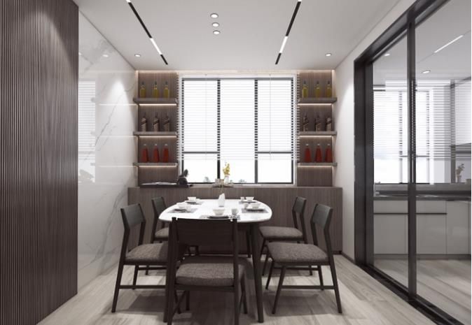 儲(chǔ)物餐邊柜,木飾面加大規(guī)格巖板背景,實(shí)現(xiàn)裝修內(nèi)容主次分明,有詳有簡(jiǎn)。