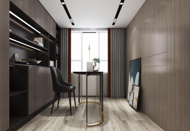 書(shū)房十分淡雅,這里沒(méi)有多余的色彩、布置和家具,沒(méi)有喧囂與繁冗,一派寧?kù)o悠遠(yuǎn)。